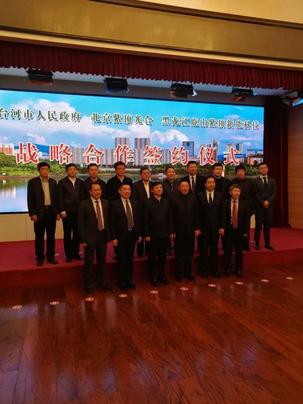 2019年1月20日上午,七臺河市人民政府、北京紫頂光合企業(yè)管理中心(有限合伙)、黑龍江鹿山紫頂新能科技有限公司簽約儀式在市專家接待中心舉行。市委書記楊廷雙,市委副書記、市長賈君,市委常委、秘書長蔣和慶,市政府副市長王義光,市政府秘書長陳志、鹿山集團鐘金海等領(lǐng)導(dǎo)出席簽約儀式。市委常委、副市長安虎賁主持簽約儀式。
